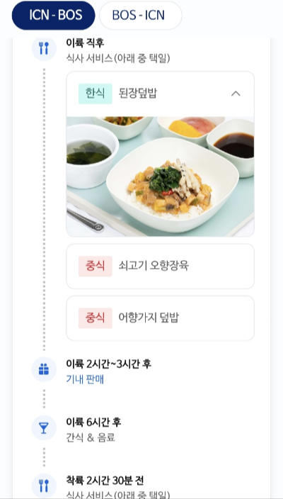 이렇게 나온다. 기내식과 간식을 먹을지 어떻게할지 계획을 세울 수 있겠군!