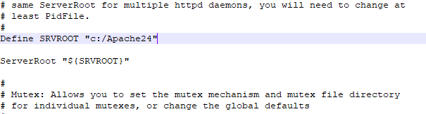여기에 server root를 지정하는 변수가 있다. server root는 웹브라우저로 웹서버에 접속했을 때 보여주는 페이지가 위치하는 경로이다. 근데 딱히 설정하지 않아도 된다.