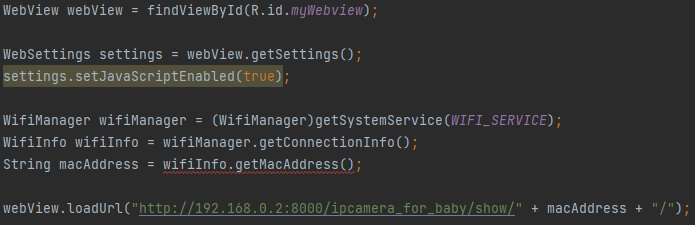 - 어플리케이션 실행시 핸드폰의 mac address를 읽어 url에 실어보내기.
